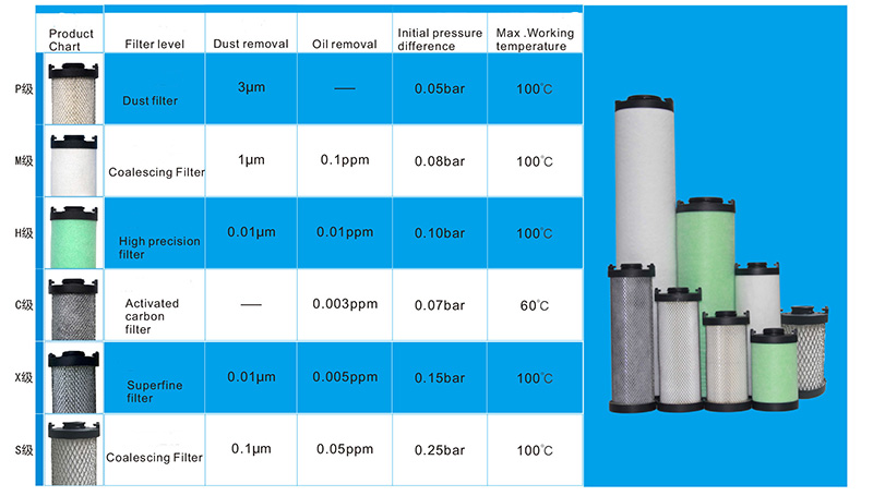 gradualmente condensado em gotas maiores.Uma vez próximos ao meio filtrante, são adsorvidos pela força eletrostática da fibra de vidro.O óleo e a água serão coletados na parte inferior do filtro e descarregados pelo dreno automático.Para proteger o meio ambiente, o óleo e a água descartados devem ser coletados em um recipiente especial.